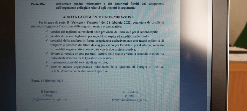 Sono state pubblicate da poche ore sul sito del Ministero dell’Interno (leggi qui) le determinazioni nn.08 e 09, emerse dalle riunioni dell’Osservatorio Nazionale per le Manifestazioni Sportive tenutesi, rispettivamente, lunedì 13 e mercoledì 15. In ragione dell’elevato numero di incontri per i quali sono stati ravvisati “profili di rischio”, pubblicheremo a più riprese le disposizioni previste (tenuto conto anche delle interlocuzioni con i vari GG.O.S. interessati), ripartite a seconda del turno di campionato nel quale sono in programma detti incontri.