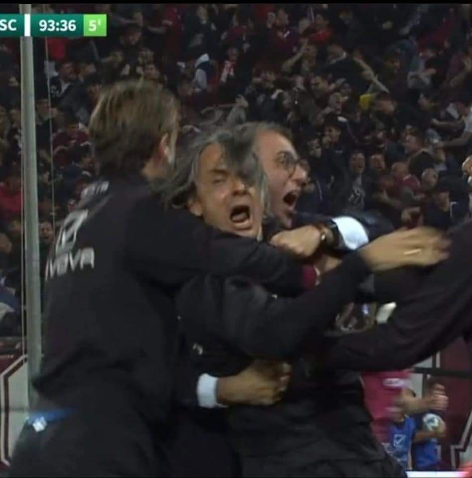 Ma quella di ieri sera è stata soprattutto la vittoria della tifoseria e della città. Indescrivibile, per chi scrive, l’emozione provata all’ingresso delle squadre quando la Curva Sud (ieri sera la più bella d’Italia) si è illuminata di speranza, si illuminata di gioia, si è illuminata di amore. Ancora e nonostante tutto. Stretti, uno accanto all’altro, a incitare, a spingere e sostenere la squadra. Fino al minuto 93. Appunto. Fino a quando il cielo è atterrato sull’erba del Granillo. Tanto forte è stato l’urlo liberatorio e selvaggio dei 15.000 presenti.