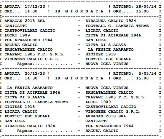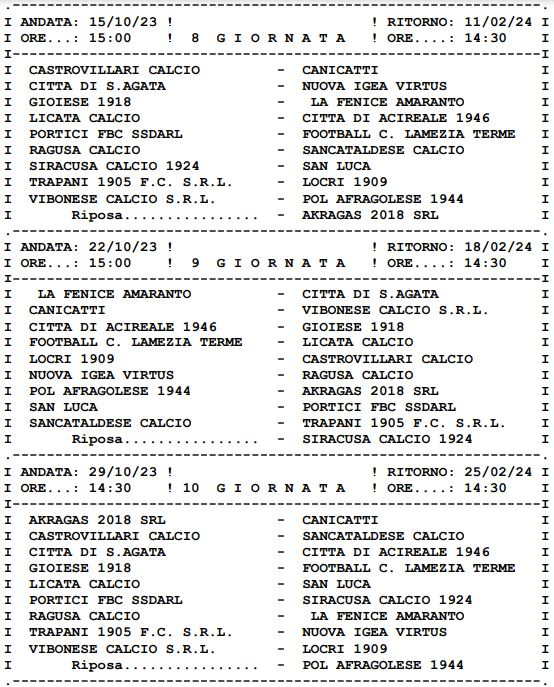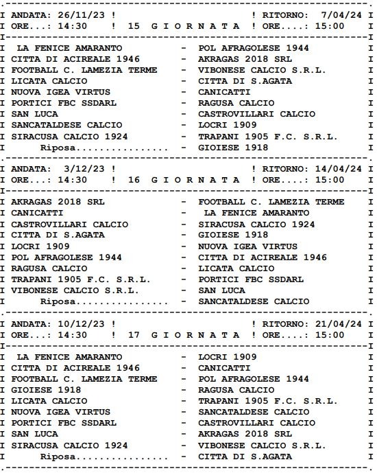 CLICCA QUI PER APRIRE IL CALENDARIO DEL GIRONE I
