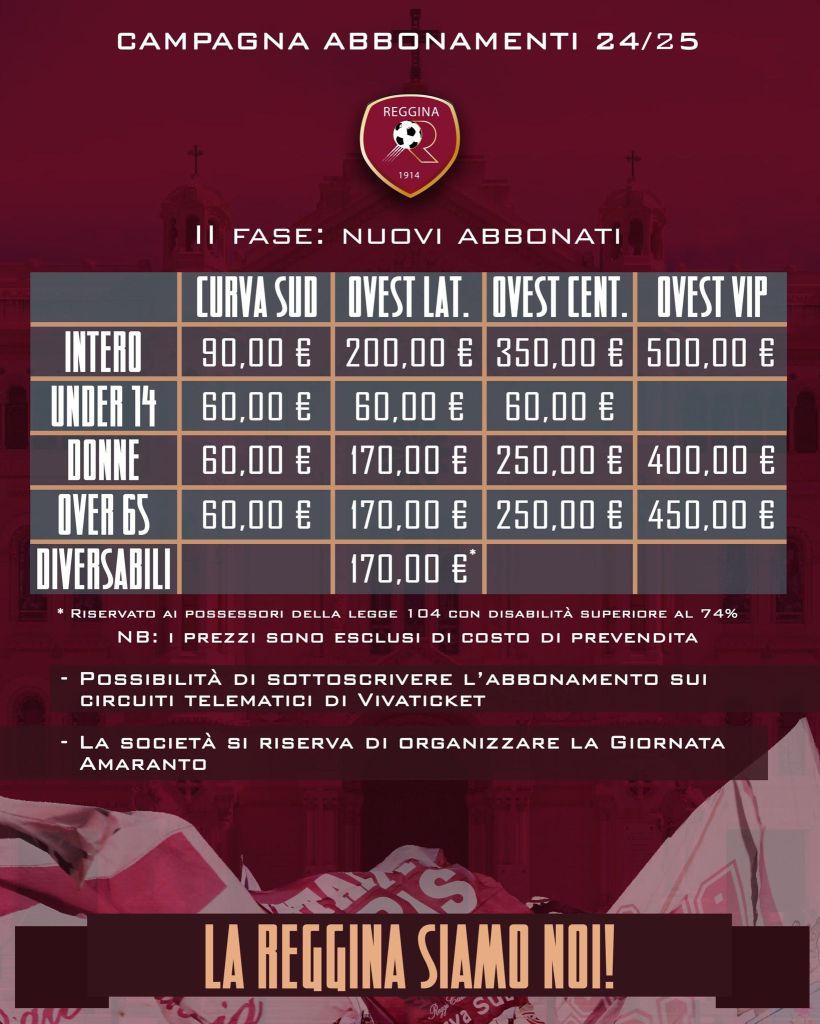 REGGINA: LA SECONDA FASE DELLA CAMPAGNA ABBONAMENTI