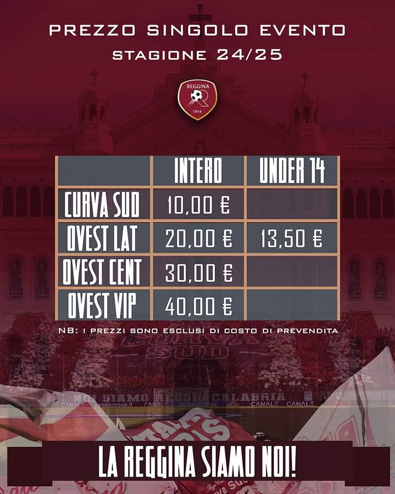 Questi, invece i prezzi relativi alle singole gare interne della formazione di Pergolizzi