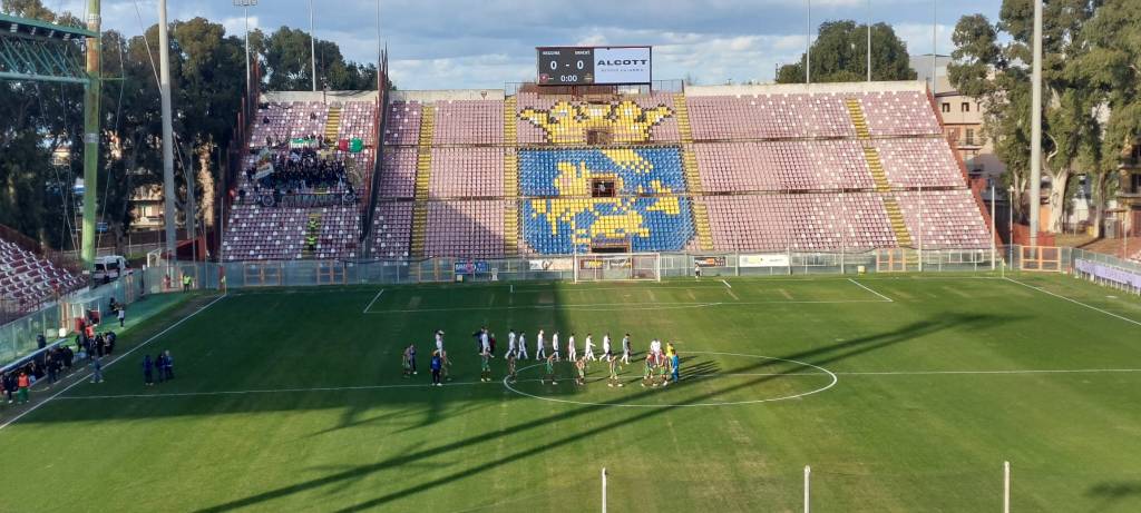 Mister Trocini dispone gli amaranto secondo il 4-3-3 con Lagonigro tra i pali; in difesa agiscono Giuliodori e Ndoye nel ruolo di terzini con Adejo e Girasole centrali; Porcino, Laaribi e Barillà in mezzo al campo con Provazza e Ragusa a supporto di Curiale. Forciniti, a sorpresa, siede in panchina. Pidatella, tecnico ospite, manda in campo un 3-5-2 abbottonatissimo con l’obiettivo di bloccare ogni iniziativa avversaria.