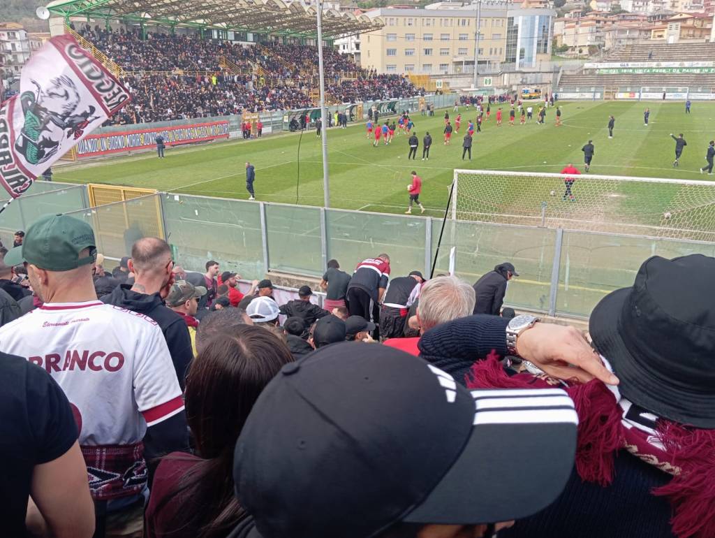 La stragrande maggioranza dei tifosi non ha per nulla apprezzato l’intenzione della società, già comunicata (minacciata) durante la campagna abbonamenti della scorsa estate, di indire la famigerata “Giornata Amaranto“, e di farlo proprio adesso, sull’onda emotiva del blitz di Sambiase, e sempre con la Vibonese a far da contraltare, visto che già in occasione della partita di Coppa Italia di inizio stagione contro gli ipponici divamparono le polemiche per i prezzi dei biglietti ed i gruppi organizzati della tifoseria misero in atto una clamorosa protesta fuori dallo stadio.