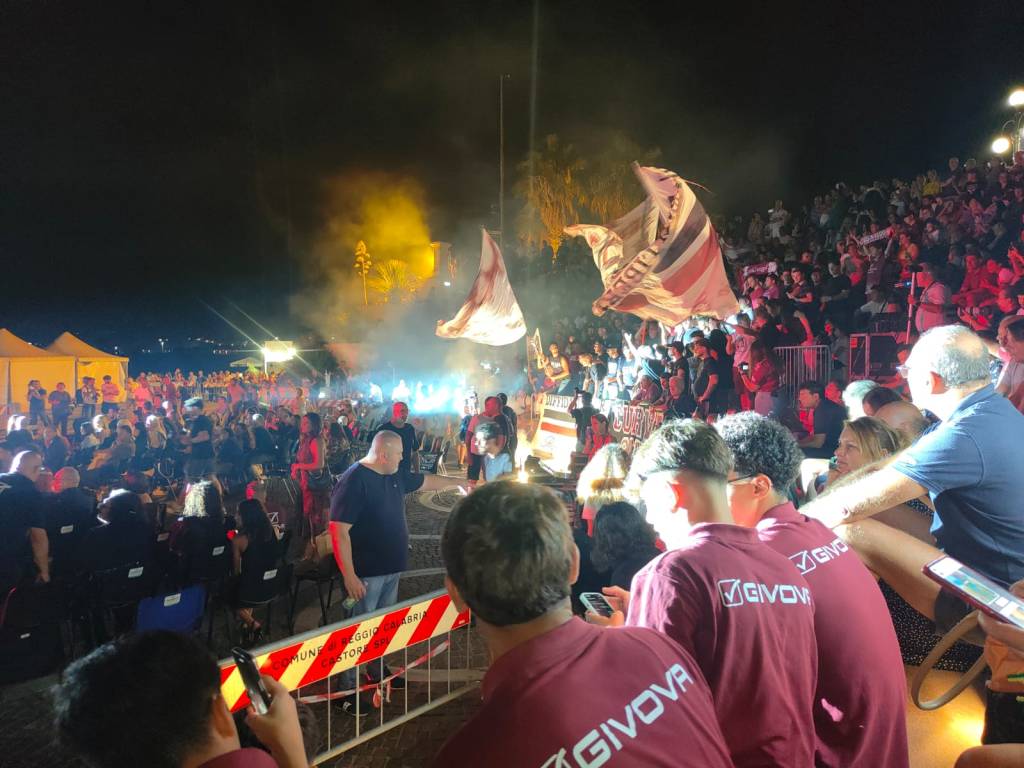 Non ci vogliono troppi giri di parole per “dire” che ci sia tanta “eccitazione” e tantissima “passione” intorno a questa Reggina che, nella serata di ieri, ha chiamato a raccolta il suo popolo all’Arena dello Stretto Ciccio Franco. C’erano tutti sul palco. A cominciare dalla presidenza per finire ai magazzinieri. Squadra inclusa. Ovazione anche per il Dottor Favasuli, “uno di noi”. Sembra che il feeling tra la città e la squadra di calcio che la rappresenta si sia ristabilito definitivamente, forse più forte di prima. Lo dicono i 2811 abbonamenti sottoscritti (e non è mica finita qui visto che nella giornata di domani si apre la terza fase), lo dicono le tante bandiere sventolanti, i canti e i cori lanciati dagli Ultras presenti sui gradoni dell’Arena e una città intera che si è stretta alla propria squadra del cuore. E lo dice Mister Bruno Trocini: