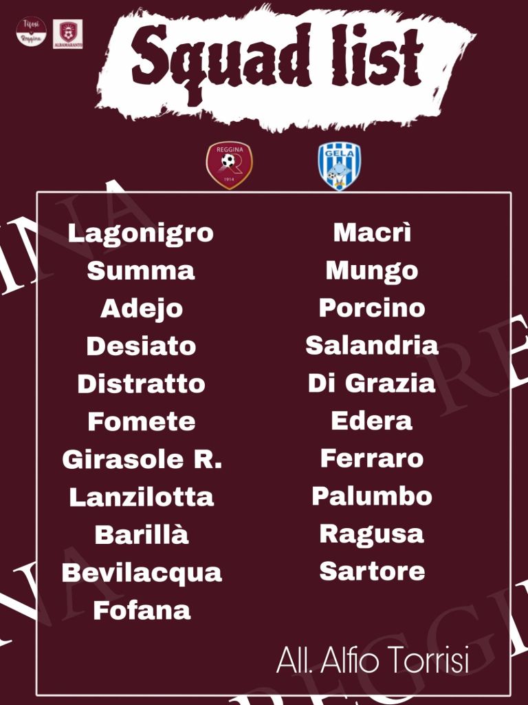 La Reggina in vista della partita contro il Gela, convoca 21 calciatori e si vede già in lista anche il nuovo acquisto Bevilacqua.