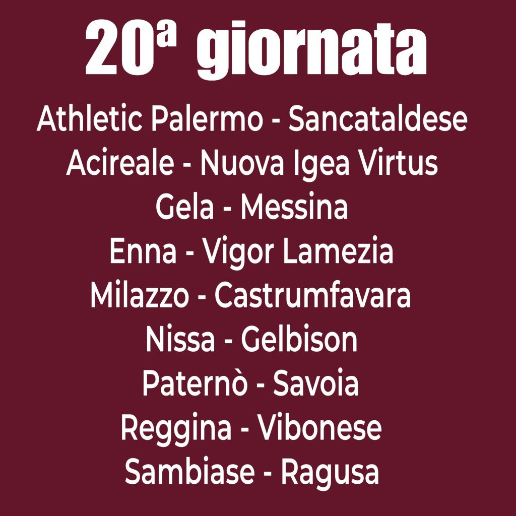 Athletic Palermo: (3ª, 35 punti) l’obiettivo è conquistare i tre punti per la vetta, ma la missione è complicata dal calendario favorevole delle dirette rivali. I palermitani devono però guardarsi anche alle spalle: non vincere significherebbe perdere il contatto con la capolista Nuova Igea Virtus. La squadra segna molto (vanta infatti il miglior attacco), ma subisce altrettanto, come dimostrato dal rocambolesco 2-3 ottenuto in trasferta contro la Vigor Lamezia.